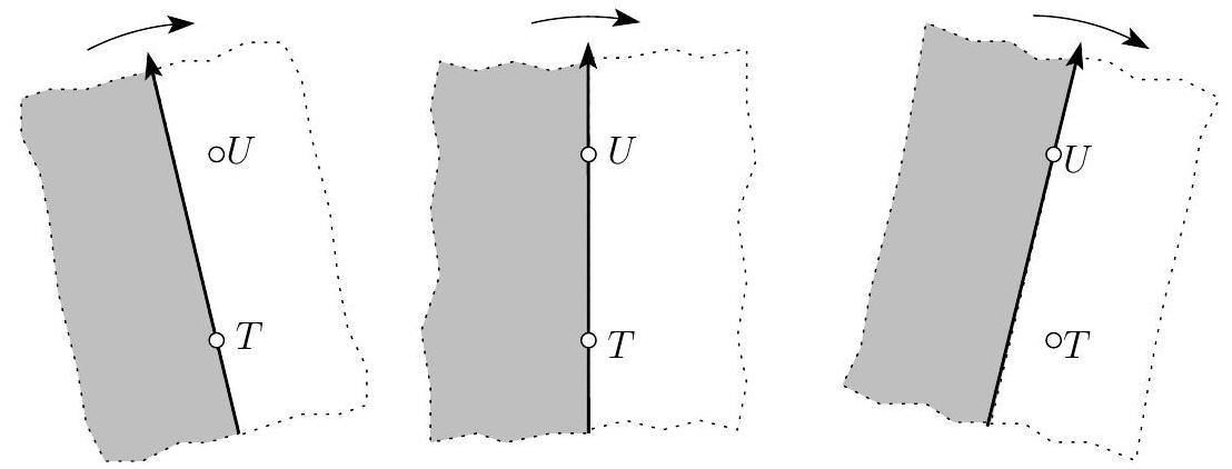 Give the rotating line an orientation and distinguish its sides as the oranje side and the blue side. Notice that whenever the pivot changes from some point $T$ to another point $U$, after the change, $T$ is on the same side as $U$ was before. Therefore, the number of elements of $\mathcal{S}$ on the oranje side and the number of those on the blue side remain the same throughout the whole process (except for those moments when the line contains two points).  First consider the case that $|\mathcal{S}|=2 n+1$ is odd. We claim that through any point $T \in \mathcal{S}$, there is a line that has $n$ points on each side. To see this, choose an oriented line through $T$ containing no other point of $\mathcal{S}$ and suppose that it has $n+r$ points on its oranje side. If $r=0$ then we have established the claim, so we may assume that $r \neq 0$. As the line rotates through $180^{\circ}$ around $T$, the number of points of $\mathcal{S}$ on its oranje side changes by 1 whenever the line passes through a point; after $180^{\circ}$, the number of points on the oranje side is $n-r$. Therefore there is an intermediate stage at which the oranje side, and thus also the blue side, contains $n$ points. Now select the point $P$ arbitrarily, and choose a line through $P$ that has $n$ points of $\mathcal{S}$ on each side to be the initial state of the windmill. We will show that during a rotation over $180^{\circ}$, the line of the windmill visits each point of $\mathcal{S}$ as a pivot. To see this, select any point $T$ of $\mathcal{S}$ and select a line $\ell$ through $T$ that separates $\mathcal{S}$ into equal halves. The point $T$ is the unique point of $\mathcal{S}$ through which a line in this direction can separate the points of $\mathcal{S}$ into equal halves (parallel translation would disturb the balance). Therefore, when the windmill line is parallel to $\ell$, it must be $\ell$ itself, and so pass through $T$. Next suppose that $|\mathcal{S}|=2 n$. Similarly to the odd case, for every $T \in \mathcal{S}$ there is an oriented line through $T$ with $n-1$ points on its oranje side and $n$ points on its blue side. Select such an oriented line through an arbitrary $P$ to be the initial state of the windmill. We will now show that during a rotation over $360^{\circ}$, the line of the windmill visits each point of $\mathcal{S}$ as a pivot. To see this, select any point $T$ of $\mathcal{S}$ and an oriented line $\ell$ through $T$ that separates $\mathcal{S}$ into two subsets with $n-1$ points on its oranje and $n$ points on its blue side. Again, parallel translation would change the numbers of points on the two sides, so when the windmill line is parallel to $\ell$ with the same orientation, the windmill line must pass through $T$. Comment. One may shorten this solution in the following way. Suppose that $|\mathcal{S}|=2 n+1$. Consider any line $\ell$ that separates $\mathcal{S}$ into equal halves; this line is unique given its direction and contains some point $T \in \mathcal{S}$. Consider the windmill starting from this line. When the line has made a rotation of $180^{\circ}$, it returns to the same location but the oranje side becomes blue and vice versa. So, for each point there should have been a moment when it appeared as pivot, as this is the only way for a point to pass from on side to the other. Now suppose that $|\mathcal{S}|=2 n$. Consider a line having $n-1$ and $n$ points on the two sides; it contains some point $T$. Consider the windmill starting from this line. After having made a rotation of $180^{\circ}$, the windmill line contains some different point $R$, and each point different from $T$ and $R$ has changed the color of its side. So, the windmill should have passed through all the points. ## $\mathrm{C} 4$ Determine the greatest positive integer $k$ that satisfies the following property: The set of positive integers can be partitioned into $k$ subsets $A_{1}, A_{2}, \ldots, A_{k}$ such that for all integers $n \geq 15$ and all $i \in\{1,2, \ldots, k\}$ there exist two distinct elements of $A_{i}$ whose sum is $n$. Answer. The greatest such number $k$ is 3 .