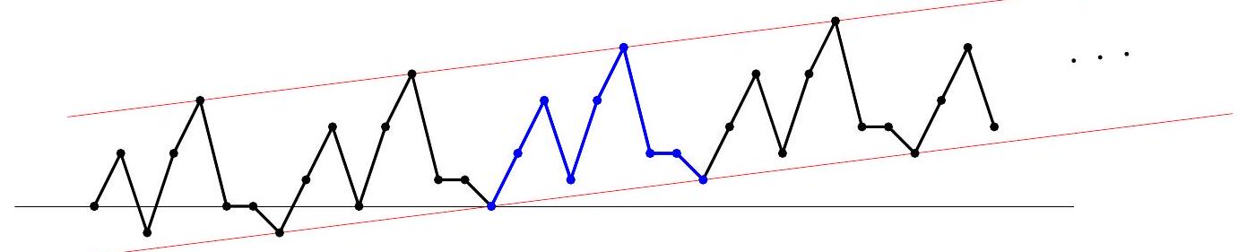 We define a good parallelogram to be a parallelogram composed of two isosceles right-angled triangles glued together as shown below.  Given any partition into $k$ right-down or right-up paths, we can find a corresponding packing of good parallelograms that leaves an area of $k$ empty. Thus, it suffices to prove that we must leave an area of at least $N$ empty when we pack good parallelograms into an $N \times N$ grid. This is actually equivalent to the original problem since we can uniquely recover the partition into right-down or right-up paths from the corresponding packing of good parallelograms.  We draw one of the diagonals in each cell so that it does not intersect any of the good parallelograms. Now, view these segments as mirrors, and consider a laser entering each of the $4 N$ boundary edges (with starting direction being perpendicular to the edge), bouncing along these mirrors until it exits at some other edge. When a laser passes through a good parallelogram, its direction goes back to the original one after bouncing two times. Thus, if the final direction of a laser is perpendicular to its initial direction, it must pass through at least one empty triangle. Similarly, if the final direction of a laser is opposite to its initial direction, it must pass though at least two empty triangles. Using this, we will estimate the number of empty triangles in the $N \times N$ grid. We associate the starting edge of a laser with the edge it exits at. Then, the boundary edges are divided into $2 N$ pairs. These pairs can be classified into three types: (1) a pair of a vertical and a horizontal boundary edge, (2) a pair of boundary edges from the same side, and (3) a pair of boundary edges from opposite sides. Since the beams do not intersect, we cannot have one type (3) pair from vertical boundary edges and another type (3) pair from horizontal boundary edges. Without loss of generality, we may assume that we have $t$ pairs of type (3) and they are all from vertical boundary edges. Then, out of the remaining boundary edges, there are $2 N$ horizontal boundary edges and $2 N-2 t$ vertical boundary edges. It follows that there must be at least $t$ pairs of type (2) from horizontal boundary edges. We know that a laser corresponding to a pair of type (1) passes through at least one empty triangle, and a laser corresponding to a pair of type (2) passes through at least two empty triangles. Thus, as the beams do not intersect, we have at least $(2 N-2 t)+2 \cdot t=2 N$ empty triangles in the grid, leaving an area of at least $N$ empty as required.