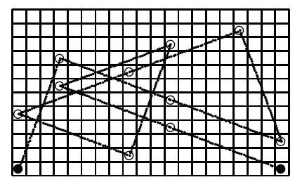 24. We shall work on the array of lattice points defined by $\mathcal{A}=\left\{(x, y) \in \mathbb{Z}^{2} \mid\right.$ $0 \leq x \leq 19,0 \leq y \leq 11\}$. Our task is to move from $(0,0)$ to $(19,0)$ via the points of $\mathcal{A}$ so that each move has the form $(x, y) \rightarrow(x+a, y+b)$, where $a, b \in \mathbb{Z}$ and $a^{2}+b^{2}=r$. (a) If $r$ is even, then $a+b$ is even whenever $a^{2}+b^{2}=r(a, b \in \mathbb{Z})$. Thus the parity of $x+y$ does not change after each move, so we cannot reach $(19,0)$ from $(0,0)$. If $3 \mid r$, then both $a$ and $b$ are divisible by 3 , so if a point $(x, y)$ can be reached from $(0,0)$, we must have $3 \mid x$. Since $3 \nmid 19$, we cannot get to $(19,0)$. (b) We have $r=73=8^{2}+3^{2}$, so each move is either $(x, y) \rightarrow(x \pm 8, y \pm 3)$ or $(x, y) \rightarrow(x \pm 3, y \pm 8)$. One possible solution is shown in Fig. 1. (c) We have $97=9^{2}+4^{2}$. Let us partition $\mathcal{A}$ as $\mathcal{B} \cup \mathcal{C}$, where $\mathcal{B}=$ $\{(x, y) \in \mathcal{A} \mid 4 \leq y \leq 7\}$. It is easily seen that moves of the type $(x, y) \rightarrow(x \pm 9, y \pm 4)$ always take us from the set $\mathcal{B}$ to $\mathcal{C}$ and vice versa, while the moves $(x, y) \rightarrow(x \pm 4, y \pm 9)$ always take us from $\mathcal{C}$ to $\mathcal{C}$. Furthermore, each move of the type $(x, y) \rightarrow(x \pm 9, y \pm 4)$ changes the parity of $x$, so to get from $(0,0)$ to $(19,0)$ we must have an odd number of such moves. On the other hand, with an odd number of such moves, starting from $\mathcal{C}$ we can end up only in $\mathcal{B}$, although the point $(19,0)$ is not in $\mathcal{B}$. Hence, the answer is no. Remark. Part (c) can also be solved by examining all cells that can be reached from $(0,0)$. All these cells are marked in Fig. 2.  Fig. 1  Fig. 2