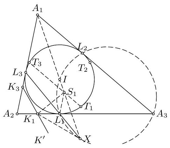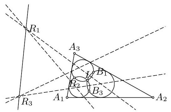 9. (USA) Let $A_{1} A_{2} A_{3}$ be a nonisosceles triangle with incenter $I$. Let $C_{i}$, $i=1,2,3$, be the smaller circle through $I$ tangent to $A_{i} A_{i+1}$ and $A_{i} A_{i+2}$ (the addition of indices being mod 3 ). Let $B_{i}, i=1,2,3$, be the second point of intersection of $C_{i+1}$ and $C_{i+2}$. Prove that the circumcenters of the triangles $A_{1} B_{1} I, A_{2} B_{2} I, A_{3} B_{3} I$ are collinear.