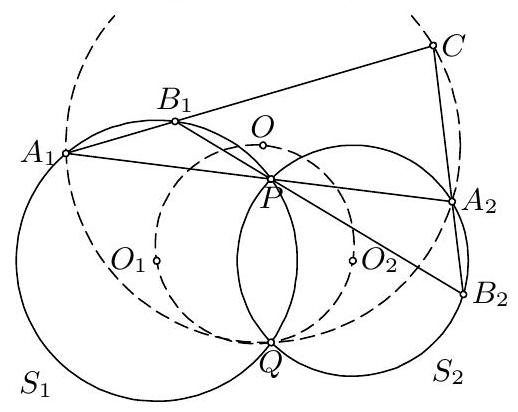 1. We begin with the following observation: Suppose that $P$ lies in $\triangle A E B$, where $E$ is the intersection of $A C$ and $B D$ (the other cases are similar). Let $M, N$ be the feet of the perpendiculars from $P$ to $A C$ and $B D$ respectively. We have $S_{A B P}=S_{A B E}-S_{A E P}-S_{B E P}=\frac{1}{2}(A E \cdot B E-A E \cdot E N-B E$. $E M)=\frac{1}{2}(A M \cdot B N-E M \cdot E N)$. Similarly, $S_{C D P}=\frac{1}{2}(C M \cdot D N-E M$. $E N)$. Therefore, we obtain $$ S_{A B P}-S_{C D P}=\frac{A M \cdot B N-C M \cdot D N}{2} $$ Now suppose that $A B C D$ is cyclic. Then $P$ is the circumcenter of $A B C D$; hence $M$ and $N$ are the midpoints of $A C$ and $B D$. Hence $A M=C M$ and $B N=D N$; thus (1) gives us $S_{A B P}=S_{C D P}$. On the other hand, suppose that  $A B C D$ is not cyclic and let w.l.o.g. $P A=P B>P C=P D$. Then we must have $A M>C M$ and $B N>$ $D N$, and consequently by (1), $S_{A B P}>S_{C D P}$. This proves the other implication. Second solution. Let $F$ and $G$ denote the midpoints of $A B$ and $C D$, and assume that $P$ is on the same side of $F G$ as $B$ and $C$. Since $P F \perp A B$, $P G \perp C D$, and $\angle F E B=\angle A B E, \angle G E C=\angle D C E$, a direct computation yields $\angle F P G=\angle F E G=90^{\circ}+\angle A B E+\angle D C E$. Taking into account that $S_{A B P}=\frac{1}{2} A B \cdot F P=F E \cdot F P$, we note that $S_{A B P}=S_{C D P}$ is equivalent to $F E \cdot F P=G E \cdot G P$, i.e., to $F E / E G=$ $G P / P F$. But this last is equivalent to triangles $E F G$ and $P G F$ being similar, which holds if and only if $E F P G$ is a parallelogram. This last is equivalent to $\angle E F P=\angle E G P$, or $2 \angle A B E=2 \angle D C E$. Thus $S_{A B P}=$ $S_{C D P}$ is equivalent to $A B C D$ being cyclic. Remark. The problems also allows an analytic solution, for example putting the $x$ and $y$ axes along the diagonals $A C$ and $B D$.