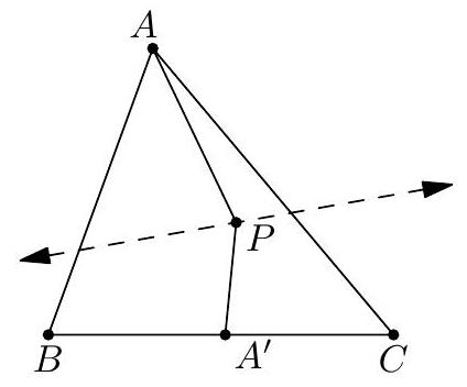 We will prove the inequality $$ \frac{2}{A P}+\frac{5}{B Q}+\frac{5}{C R} \geq \frac{6}{r} $$ with equality when $A P: B Q: C R=1: 4: 4$. This implies the problem statement. Letting $x=A P, y=B Q, z=C R$, the inequality becomes $$ \frac{2}{x}+\frac{5}{y}+\frac{5}{z} \geq 6 \sqrt{\frac{x+y+z}{x y z}} . $$ Squaring both sides and collecting terms gives $$ \frac{4}{x^{2}}+\frac{25}{y^{2}}+\frac{25}{z^{2}}+\frac{14}{y z} \geq \frac{16}{x y}+\frac{16}{x z} $$ If we replace $x=1 / a, y=4 / b, z=4 / c$, then it remains to prove the inequality $$ 64 a^{2}+25(b+c)^{2} \geq 64 a(b+c)+36 b c $$ where equality holds when $a=b=c$. This follows by two applications of AM-GM: $$ \begin{aligned} 16\left(4 a^{2}+(b+c)^{2}\right) & \geq 64 a(b+c) \\ 9(b+c)^{2} & \geq 36 b c . \end{aligned} $$ Again one can tell this is an inequality by counting degrees of freedom.