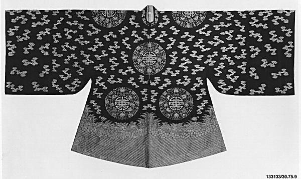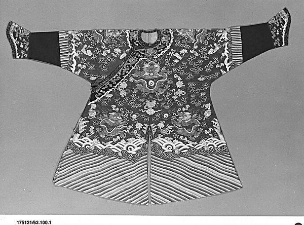 68,518 | false | 30.75.14 | 1930 | true | [] | null | Asian Art | Robe, Imperial Court | Imperial Court Robe | China | Qing dynasty (1644–1911), Guangxu period (1875–1908) | 1,875 | 1,908 | Silk, metallic thread | 52 1/4 x 26 in. (132.72 x 66.04 cm) | [