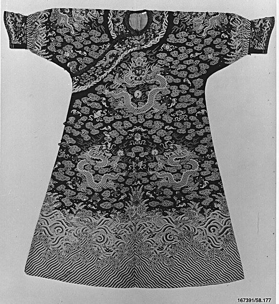 ] | null | Asian Art | Dragon Robe | Dragon Robe | China | Qing dynasty (1644–1911) | late 19th century | 1,871 | 1,899 | Silk, metallic thread, some ink | 53 1/2 in. (135.9 cm) neck to hem in back | [