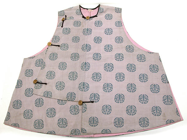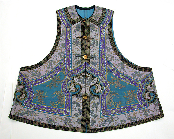 ] | null | Asian Art | Woman's sleeveless jacket | Woman's Sleeveless Jacket | China | early 20th century | 1,900 | 1,933 | Silk tapestry (kesi) | Overall: 27 x 30 5/8 in. (68.6 x 77.8 cm) | [