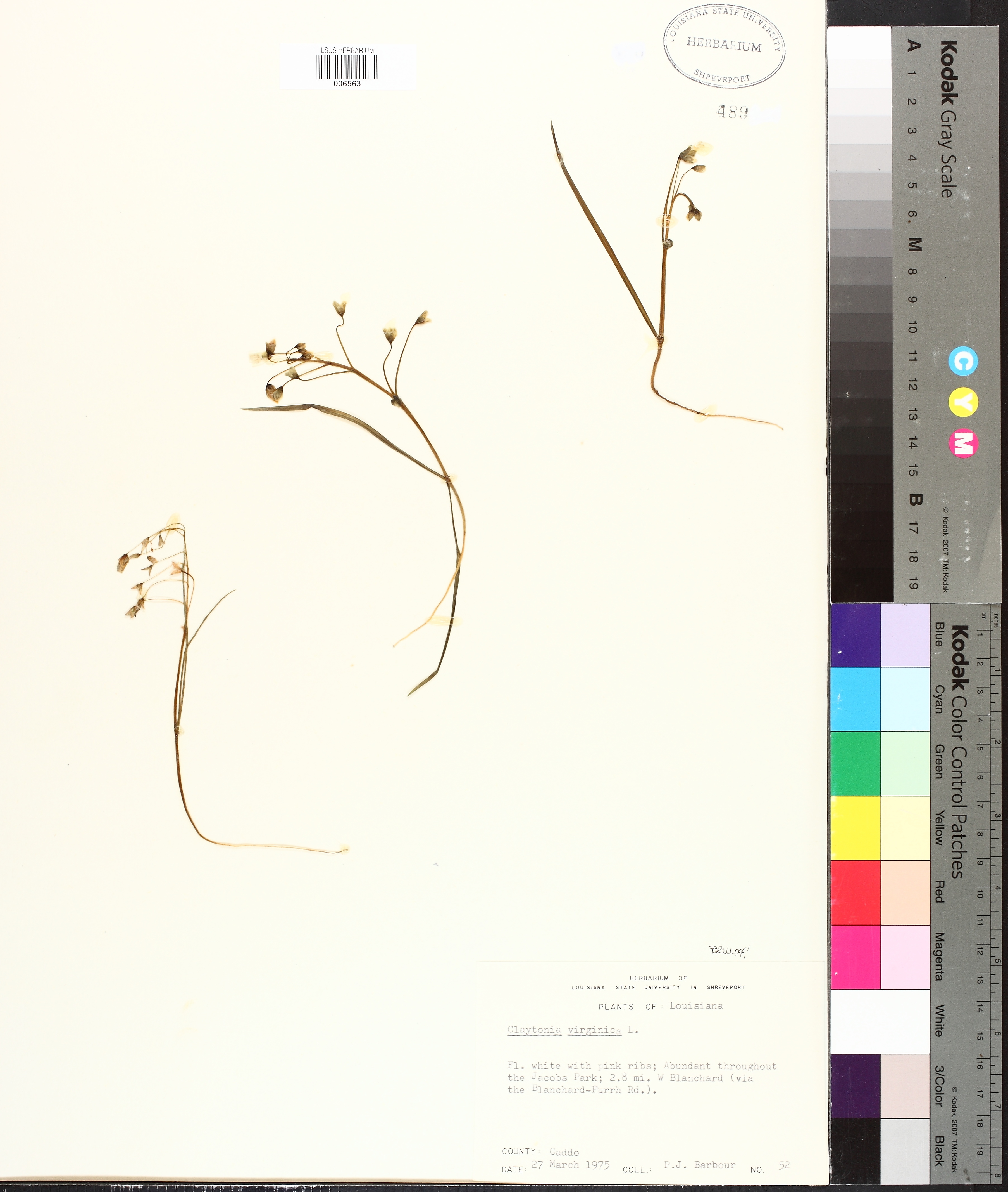 da8e11de-6a92-4b76-af05-998ced5c135b | Plantae | Tracheophyta | Magnoliopsida | Caryophyllales | Montiaceae | Claytonia | virginica | Claytonia virginica | Virginia springbeauty | gbif | Louisiana State University Shreveport, D. T. MacRoberts Herbarium | PRESERVED_SPECIMEN | Museum Specimen: Plant | 3775546853 | shard-07275.tar | 200M_v1.1/224x224/shards/shard-07275.tar | data/source=gbif/server=cyberfloralouisiana.com/data_3c9e0cbc-d2f1-40e9-aeb9-f81449b5f347.parquet | |