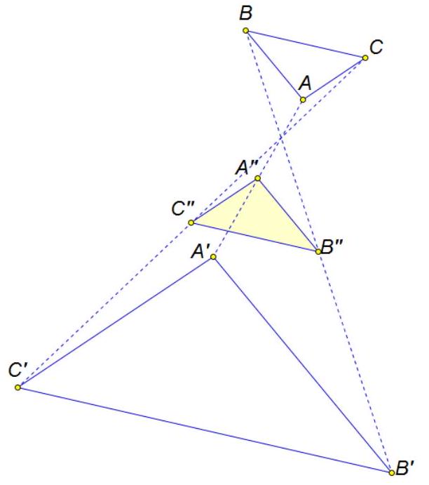 b) The middle part is chosen as the base of an equilateral triangle located outside the polygon.