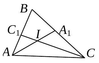 3. Two angle bisectors of a triangle intersect at an angle of 60 degrees. Prove that one of the angles of this triangle is 60 degrees. | Solution. Let the angle bisectors $A A_{1}$ and $C C_{1}$ of triangle