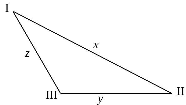 Let $x$ be the distance between the first and second compressor stations, $y$ the distance between the second and third, and $z$ the distance between the first and third (Fig. 4).