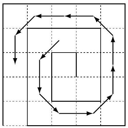Solution. The cells of the plane form a spiral consisting of straight "corridors" that turn at right angles.