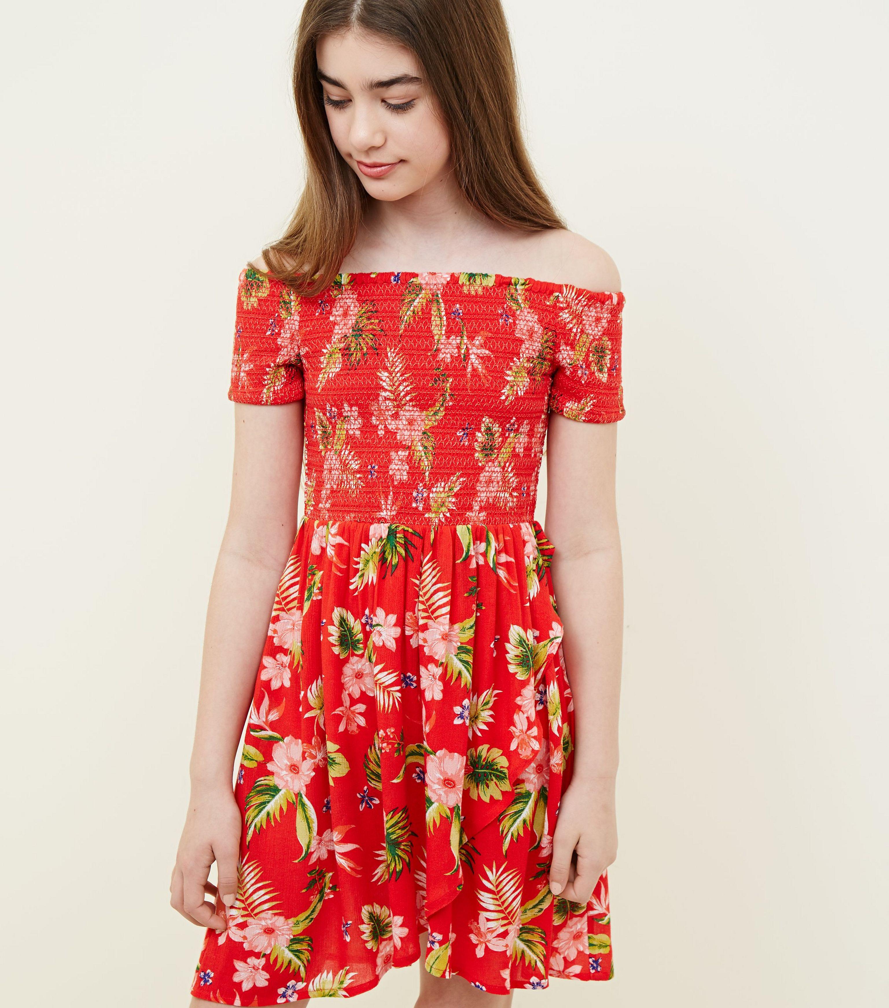 685f0c6f8bde New Look Girls Red Tropical Floral Print Bardot Dress in Red - Lyst | |||