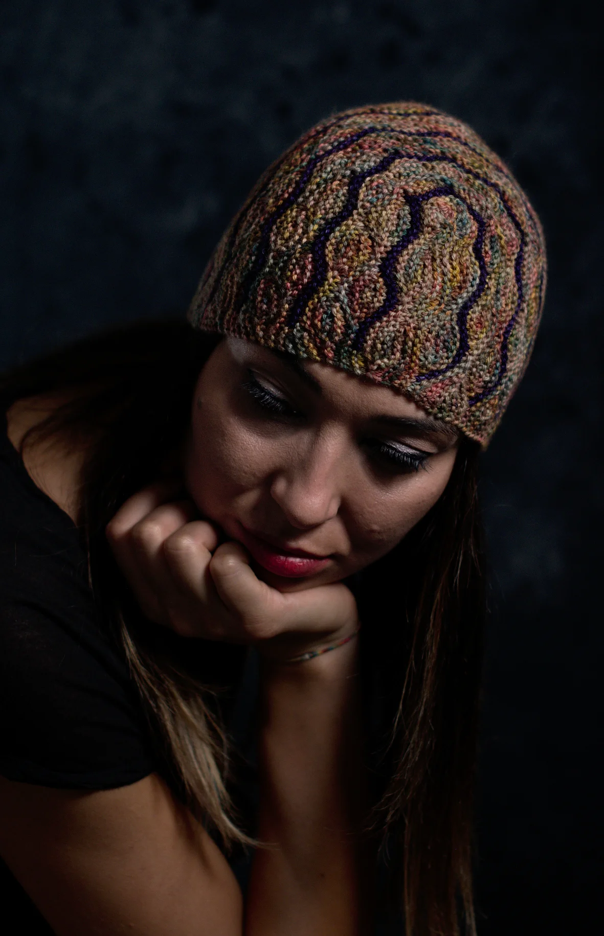 Undulous sideways knit short row colourwork hat hand knitting pattern