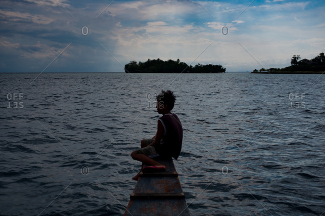 "text": "A young child wearing a blue shirt with a graphic design on it. The child has short hair and appears to be standing outdoors."