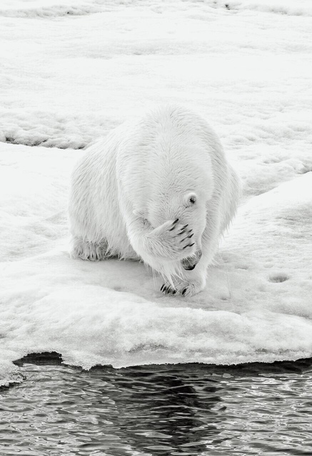 "text": "A stylized woman in a hat and dress with earrings extends her hand towards the viewer with her gaze directed towards her hand."