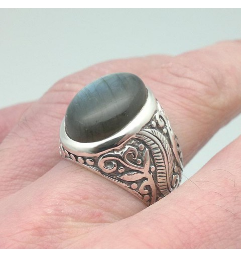 "text": "A silver chain with a large, intricately designed pendant. The pendant appears to be a stylized heart shape with a smooth surface."