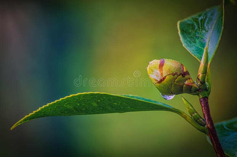 "text": "The image showcases a vibrant green branch with multiple leaves. Each leaf exhibits a glossy surface, reflecting light, and they are arranged along the branch in a symmetrical pattern."