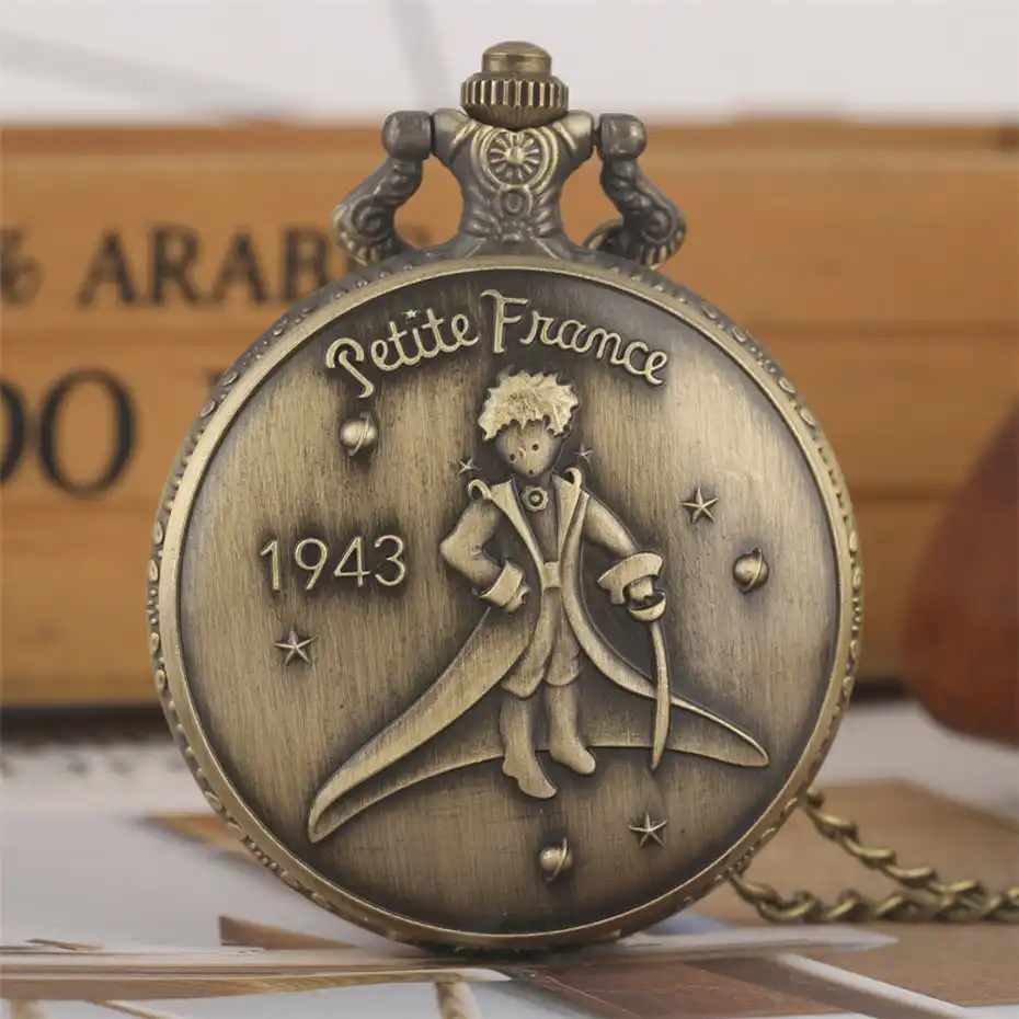 "text": "Bronze The Little Prince Theme Quartz Pocket Watch Fob Necklace Watches Retro Exquisite Pendant Clock Birthday Gifts for Kids"