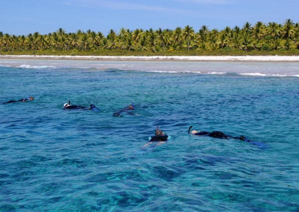 "text": "All three people are standing upright, suggesting they are engaged in a conversation or observing something together."