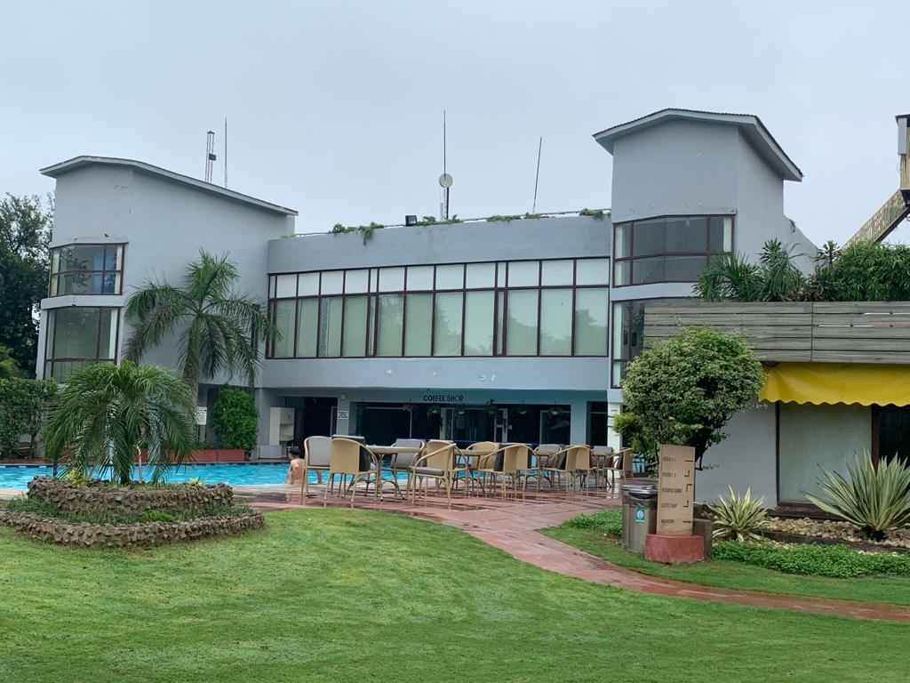"text": " The image showcases a large brick building with a flat roof. The building has multiple windows and doors, with some windows featuring balconies. A tree with green leaves stands prominently in front of the building."