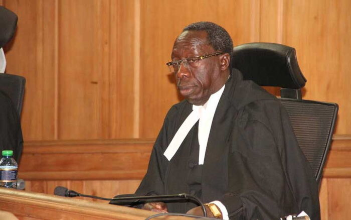 "text": "A man wearing a black leather coat with a high collar. The coat has visible pockets on the front and appears to be made from a smooth, glossy material."