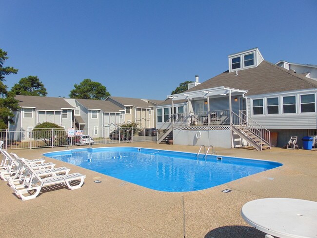 "text": "The sky in the image is a clear blue with only a few wispy clouds scattered across it."