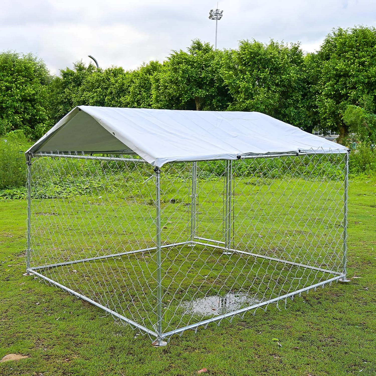 Large Outdoor Dog Kennel, Heavy Duty Outdoor Dog Kennel Cage, Outdoor Dog Fence with Waterproof UV-Resistant Cover and Secure Lock for Backyard (6.6' x 6.6' x 5')