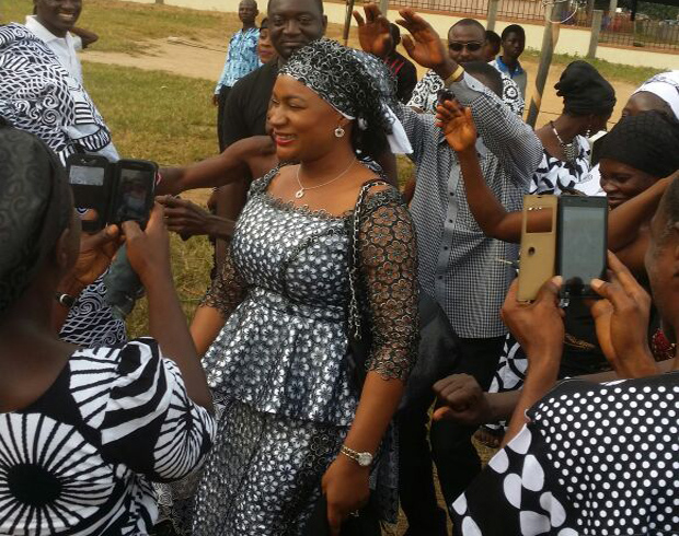 Some of the mourners tried to use their mobile phones to take 'Selfies' with the wife of the NPP Vice Presidential candidate who also acknowledged people that were chanting her name.