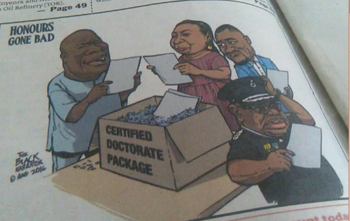 The caption that accompanied this satirical representation: “Honors Gone Bad,” we thought was highly informative and revealing. Within the same week, the same newspaper publishes an advert in which it chose to publicize the induction ceremony of (Dr.) John Kudalor, one of the individuals it lampooned just days earlier. Interestingly, it chose to address him by the very title its own newspaper caricatured days earlier. The question is: does the Daily Graphic have an editorial board that examines its publishing processes?