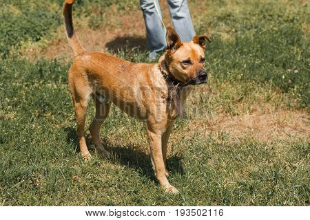 Strong Brown Dog Walking Outdoors In The Park, Mixed Bred Dog With Cute Ears On The Grass, Animal Sh | 450 | 320 | |