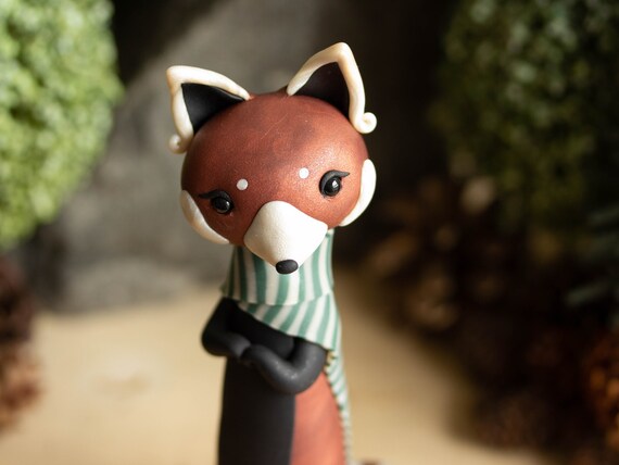 Red Panda Wearing a Striped Scarf - Red Panda Figurine | 511 | 384 | |