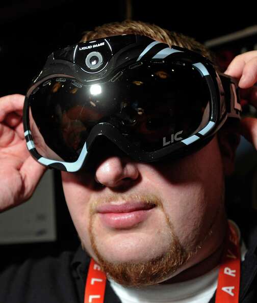 John Noonan displays a pair of Liquid Image goggles with a built in camera during a 2013 Consumer El | 384 | 454 | |