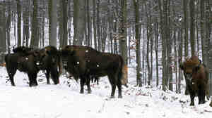 European bison, or wisents, keep a safe distance from human visitors to their enclosure on the property of Prince Richard of Sayn-Wittgenstein-Berleburg | 300 | 168 | |