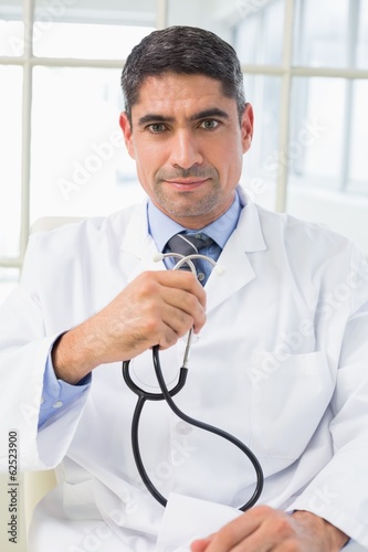Serious male doctor holding stethoscope | 334 | 500 | |