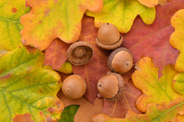 Dried acorns on autumn leaves. | 362 | 240 | |