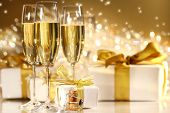 pic of special occasion - Glasses of champagne with gold ribboned gifts - JPG | 170 | 113 | |
