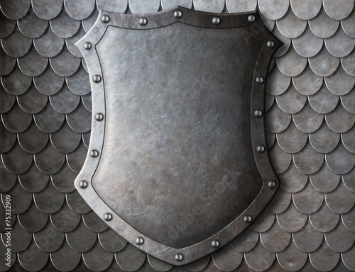 old medieval coat of arms shield over scales armour background | 500 | 384 | |
