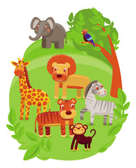 funny cartoon animals in green jungle | 194 | 240 | |