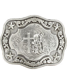 Nocona Rope Edge Cowboy Prayer Buckle, Silver, hi-res | 290 | 363 | |