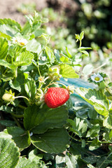 Ripe strawberry growing on bush with selective focus | 160 | 240 | |
