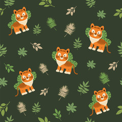 Seamless pattern with a tiger cub on a dark background | 240 | 240 | |