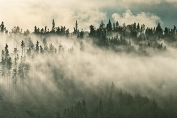 Foggy mountain ranges covered with spruce forest in the morning mist | 360 | 240 | |