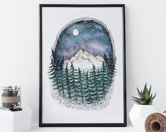 Glimmer - Mountain Art - Pacific Northwest Art - Print - Nature art - Watercolor Print - Free Shipping | 340 | 270 | |