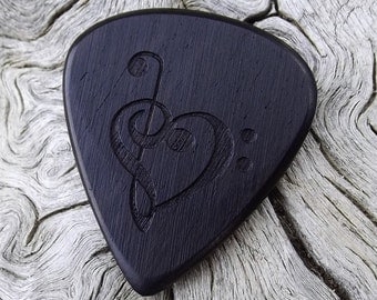 Wood Guitar Pick - Premium Quality - Handmade With African Blackwood - Laser Engraved Both Sides - Actual Pick Shown - Artisan Guitar Pick | 340 | 270 | |