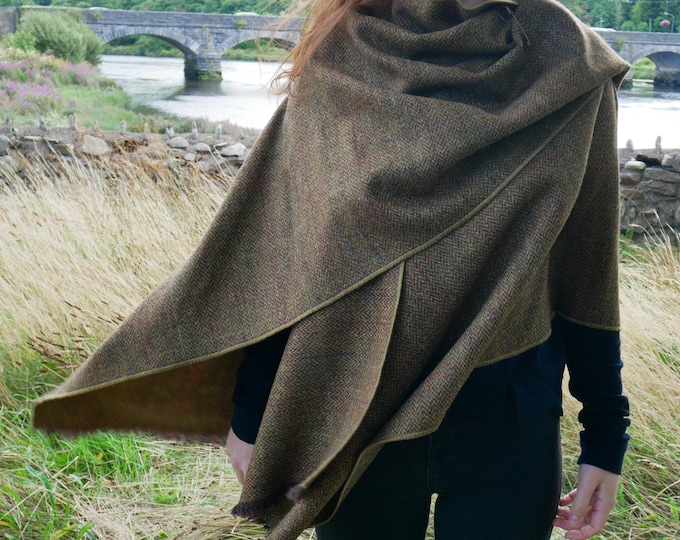 Irish tweed wool ruana,wrap,cape,coat,arisaid -bronze/brown herringbone with over check - 100% wool -ready for shipping- HANDMADE IN IRELAND | 483 | 384 | |
