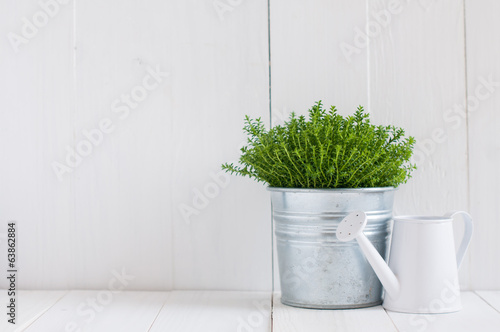 plant in a metal pot and watering can | 500 | 332 | |