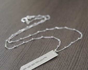 Custom hand stamped name necklace personalized bar necklace sterling silver vertical bar necklace | 340 | 270 | |