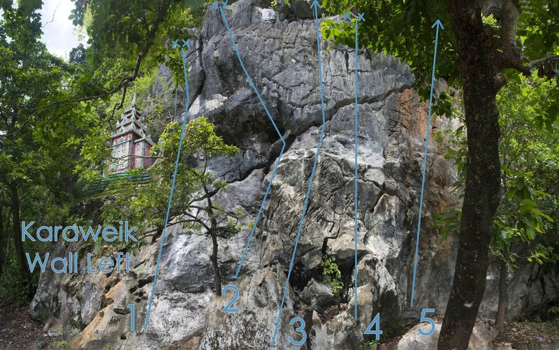 Colombière is number two on the Karaweik Wall Left topo photo. It starts on the dihedral area on the left side of the slab, and ends over the lip of the cliff. | 613 | 384 | |