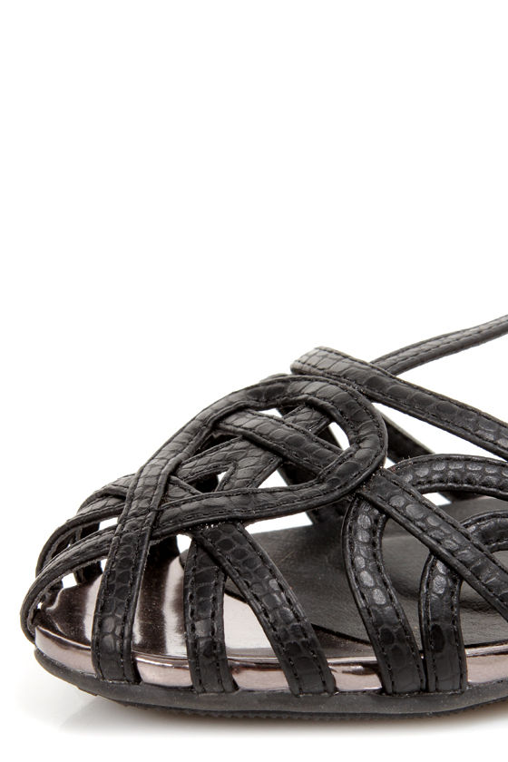Wild Diva Lounge Starla 140A Black and Pewter Cage Flats at Lulus.com! | 384 | 576 | |