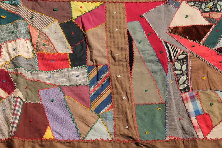 Hand-Crafted Antique Quilt, Contained 19th Century Crazy Quilt from Pennsylvania For Sale | 576 | 384 | |