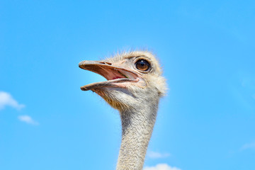 Portrait of an ostrich against the blue sky close up | 360 | 240 | |